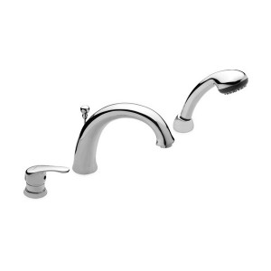Single lever deck pattern bathtub mixer with automatic diverter and shower kit.