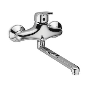 Single-control wall mounted mixer for sink with oval swivel spout 20 cm with clinical lever.