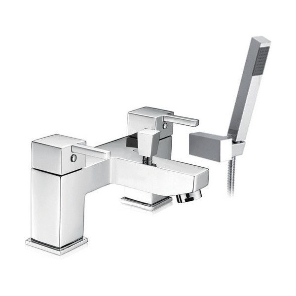 Single lever deck-mounted bathtub mixer, int. 180 mm with automatic diverter and shower kit.