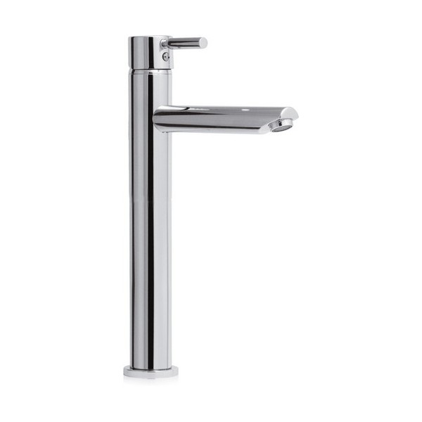 Tall single-control mixer for washbasin with long spout and CLICK-CLACK waste.