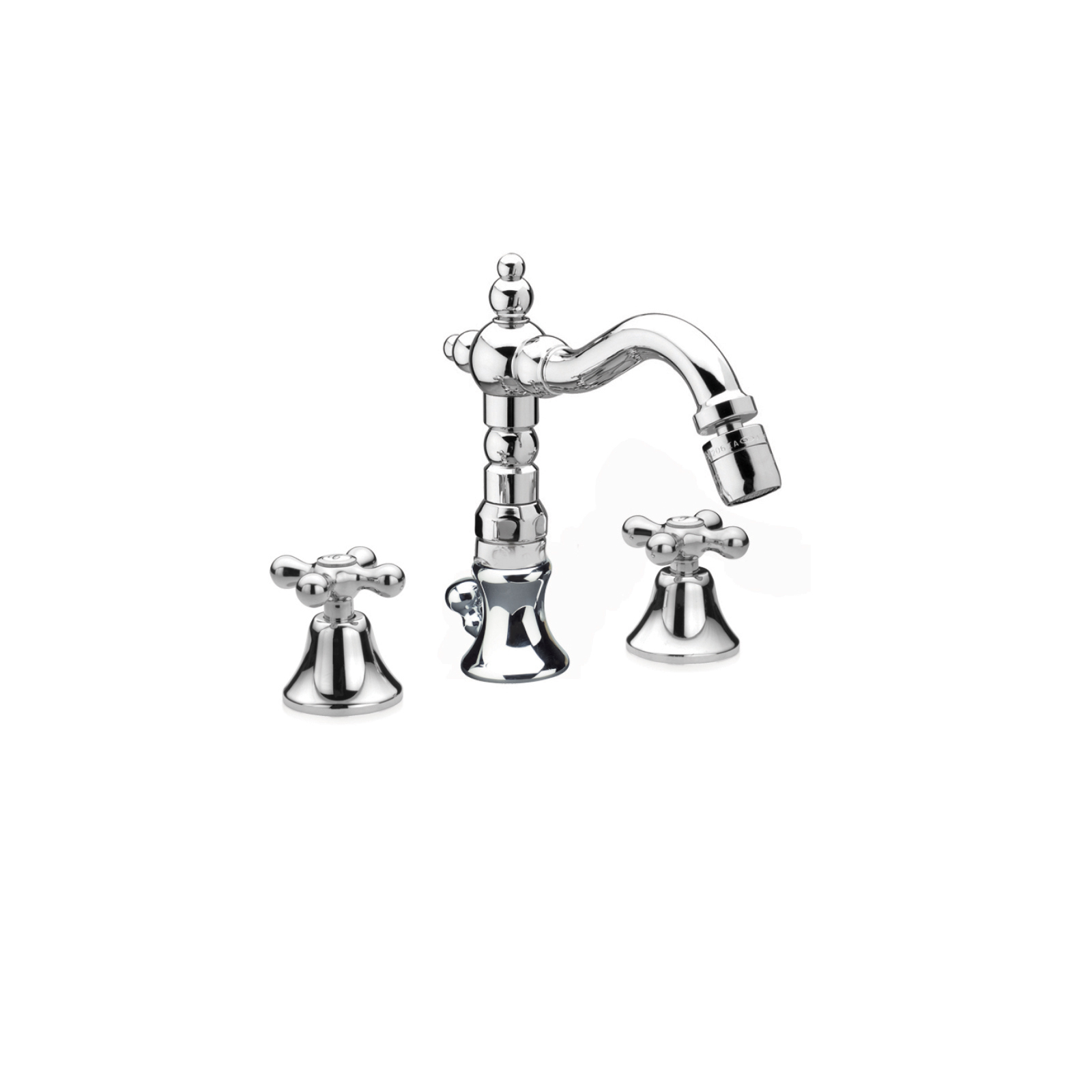 Bidet Batterie mit Einheit und automatischer Abflussgarnitur, mit und antikem rotierendem Fass