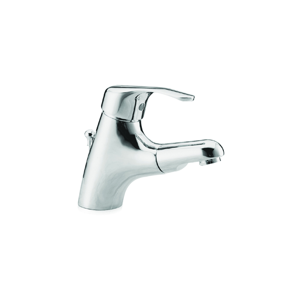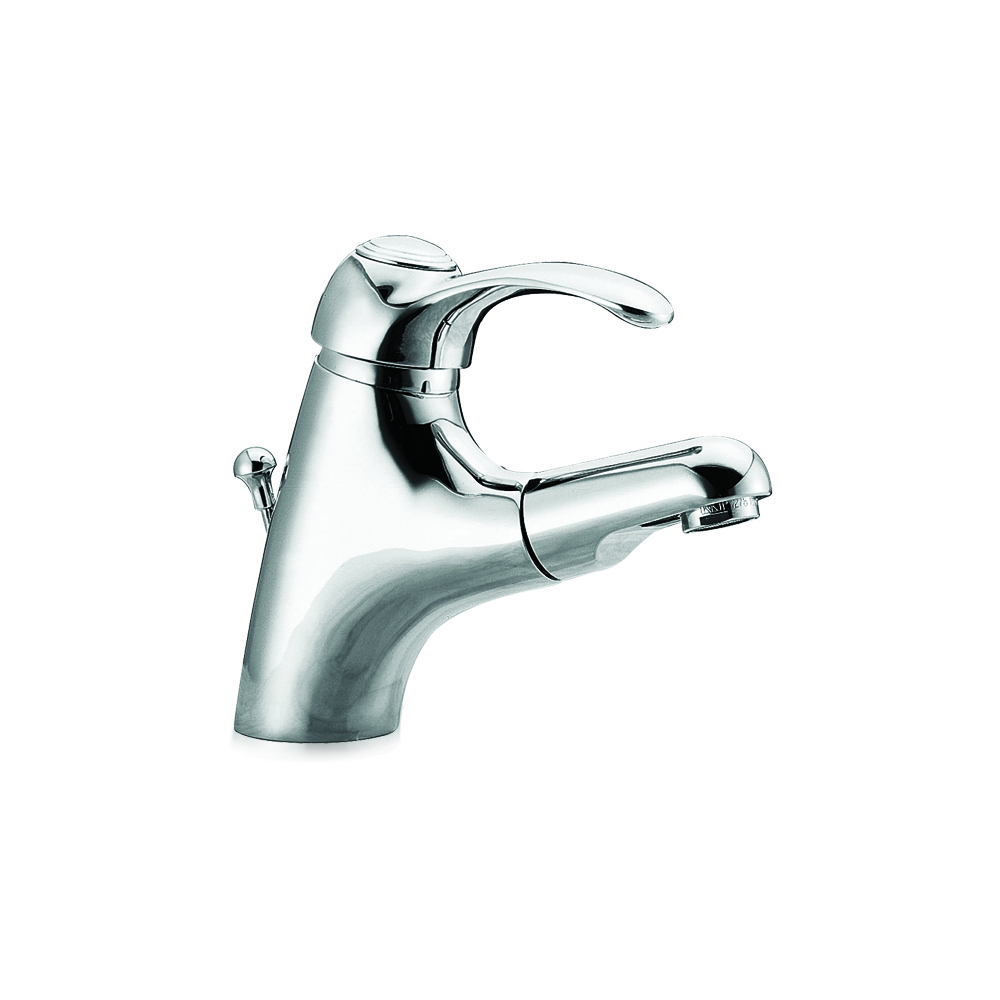 Einhebel-Waschtischmischer mit abnehmbarer Dusche und automatischer Entleerung.