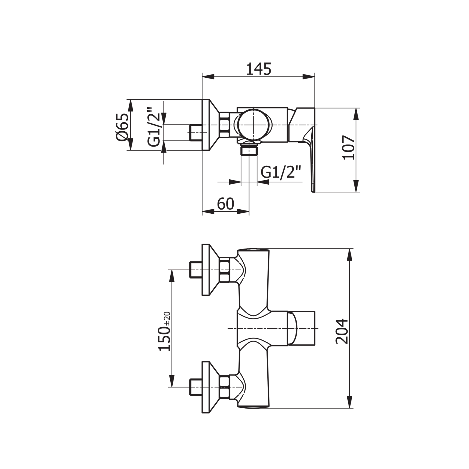 Externer Einhebel-Duschenmischer mit geringer Verbindung 1/2”.
