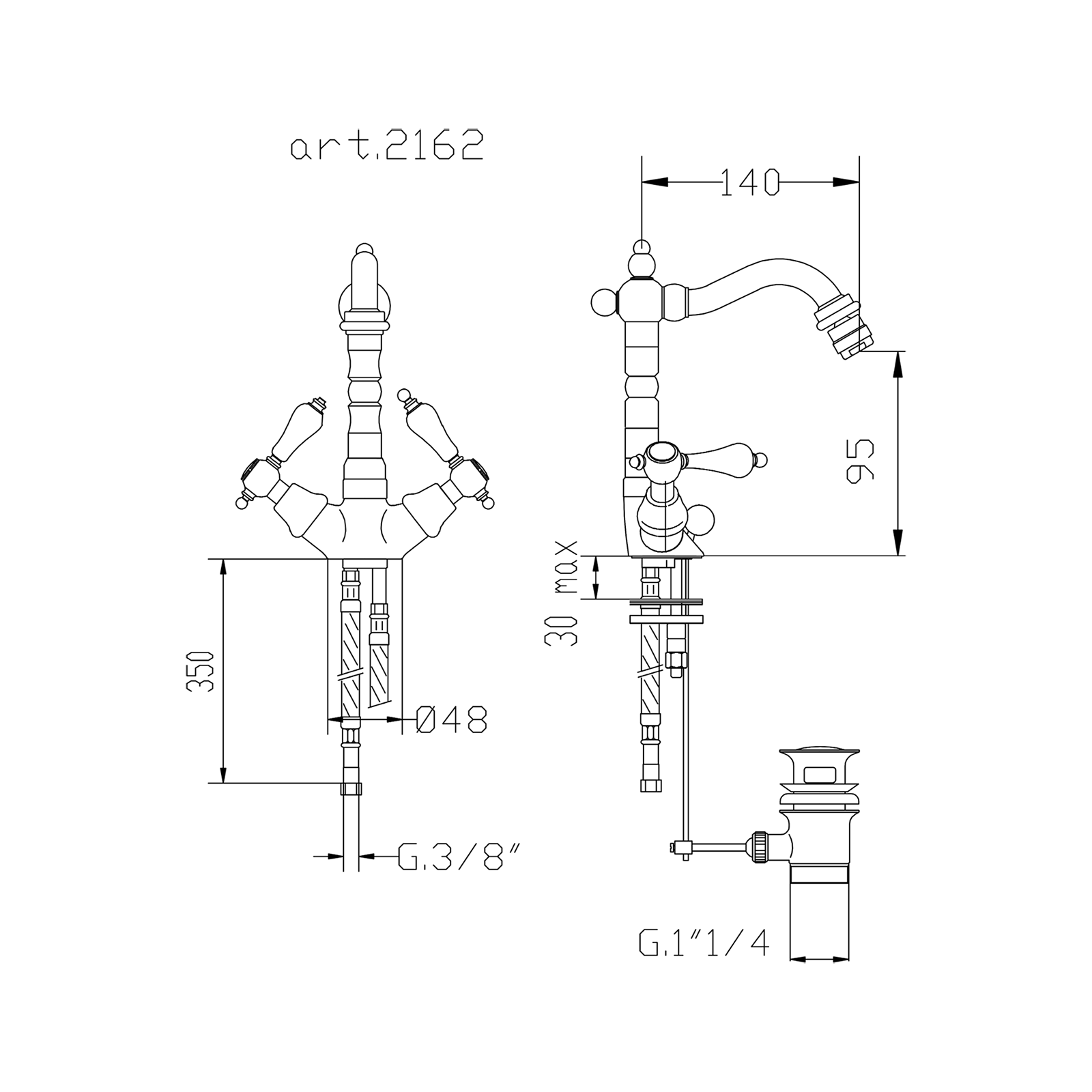 Einloch Bidet-Gruppe, mit automatischer Abflaufgarnitur una antikem rotierendem Fass.
