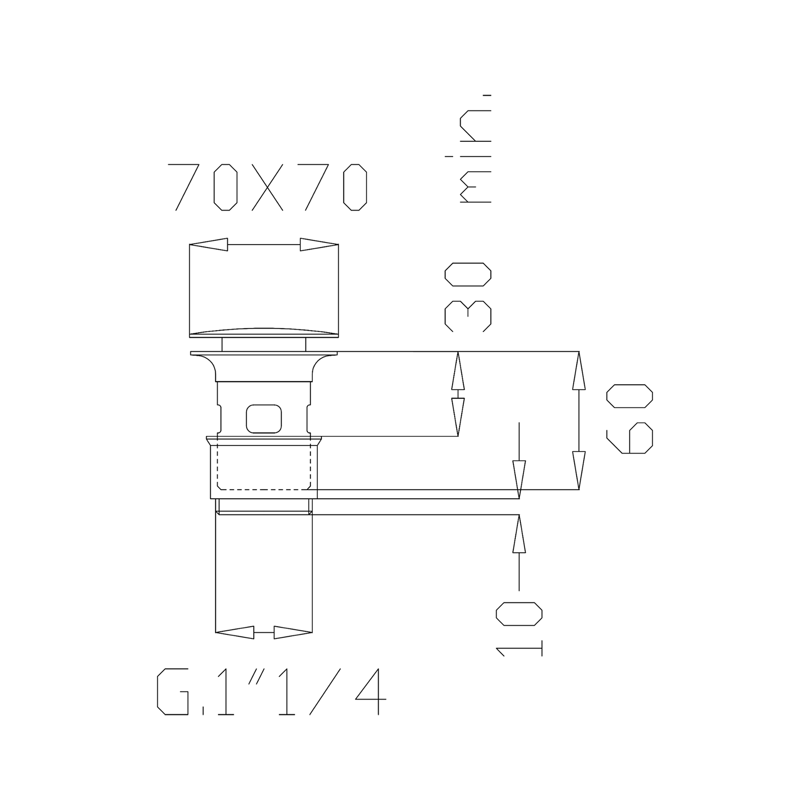 Viereckiges CLICK-CLAK Entwassern mit überlauf und klassischer Verbindung Ø 50, 1"1/4.