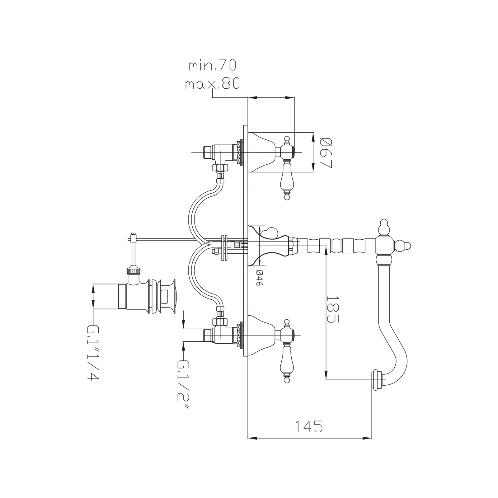 Einloch Waschbeckengruppe, mit automatischer Abflaufgarnitur una antikem rotierendem Fass.