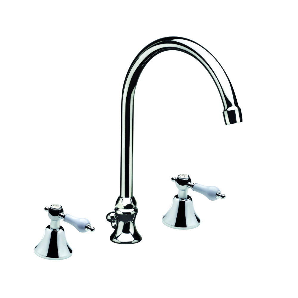 Einloch Waschbeckenbatterie, mit automatischer Abflaufgarnitur una antikem rotierendem “P” Fass.