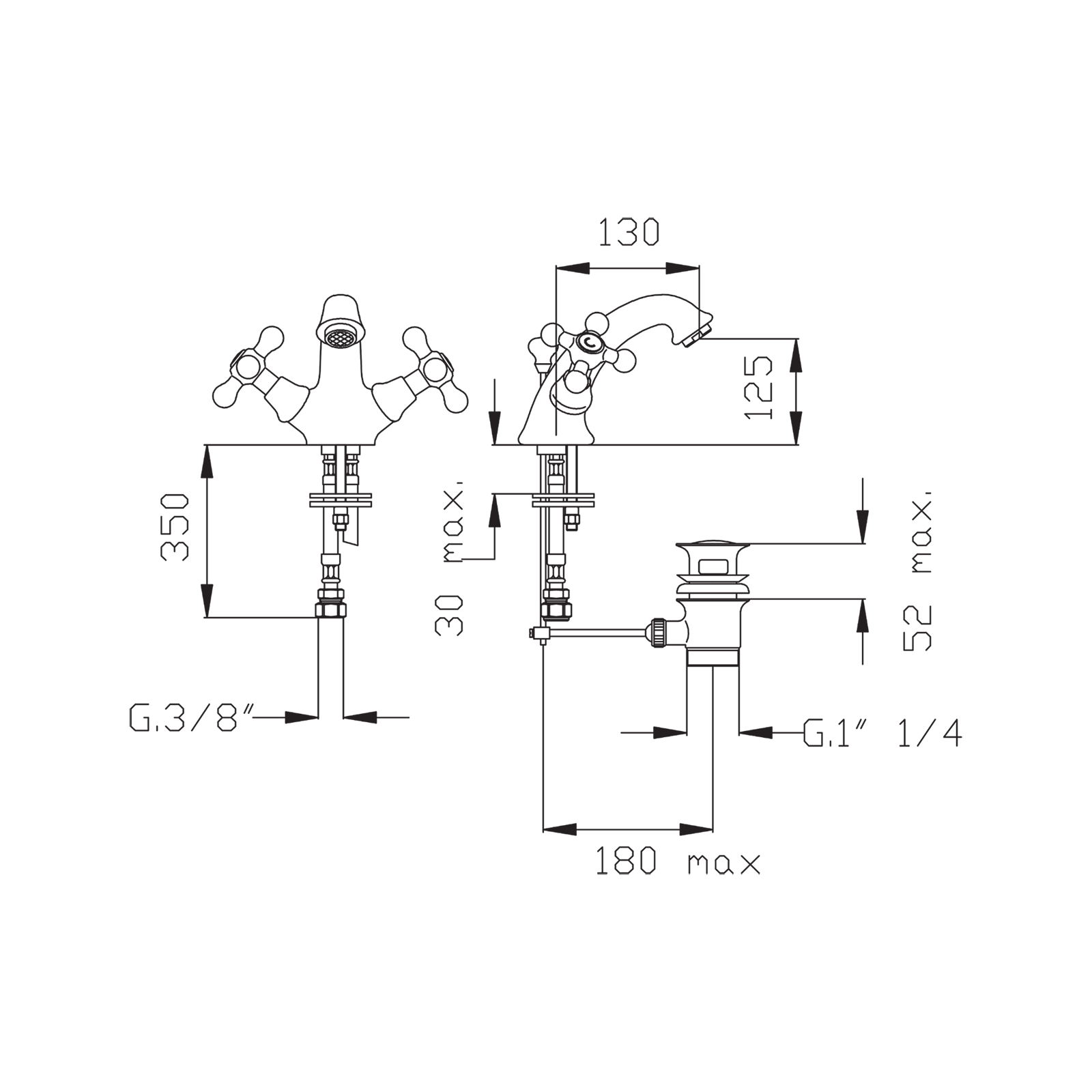 Single-hole unit for washbasin with pop-up waste.