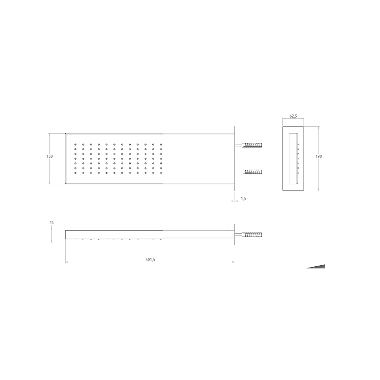 Stainless steel shower head 50x20 cm with anti-lime picots.