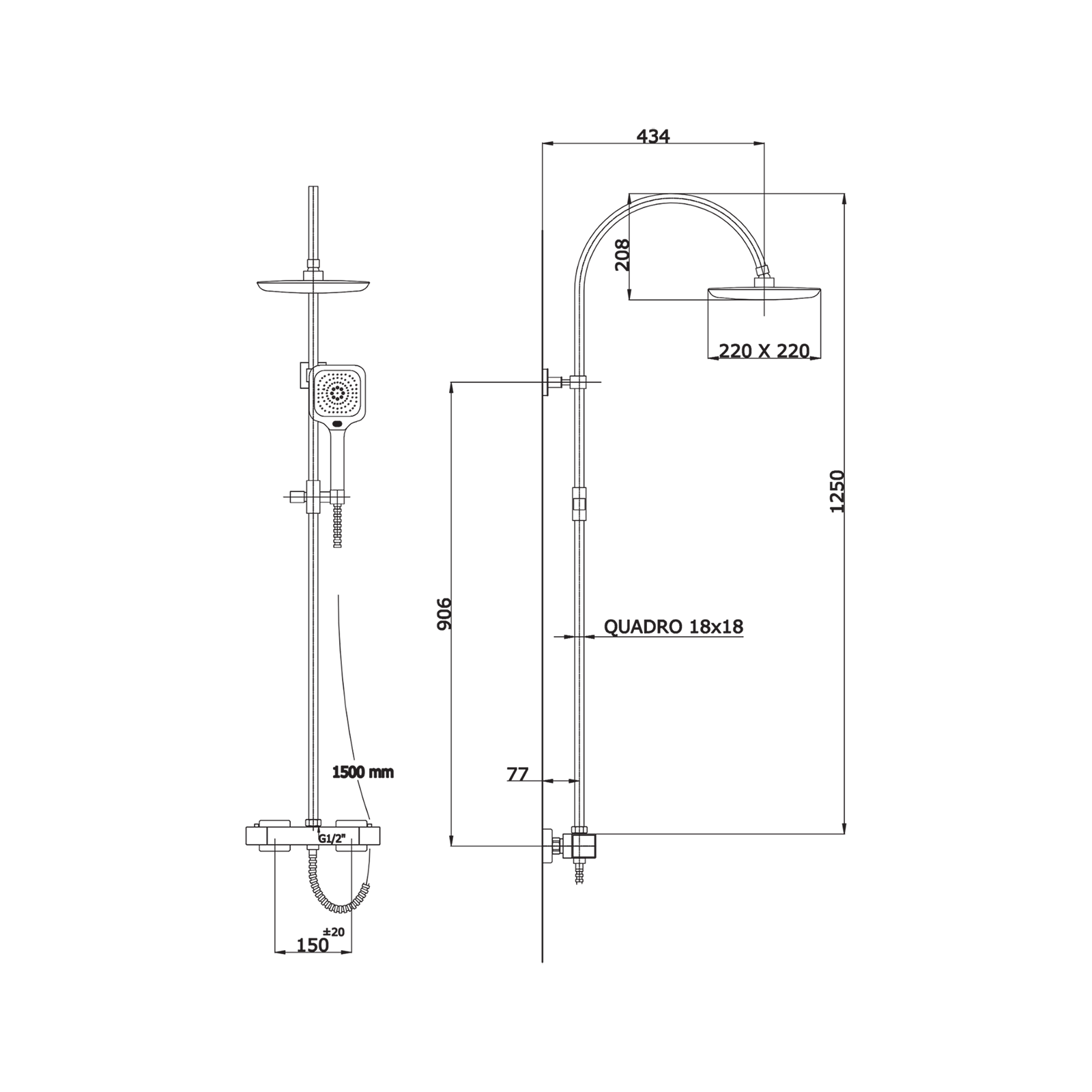Colonne de douche thermostatique avec inverseur automatique, complet avec rose auto-nettoyante et kit de douche.