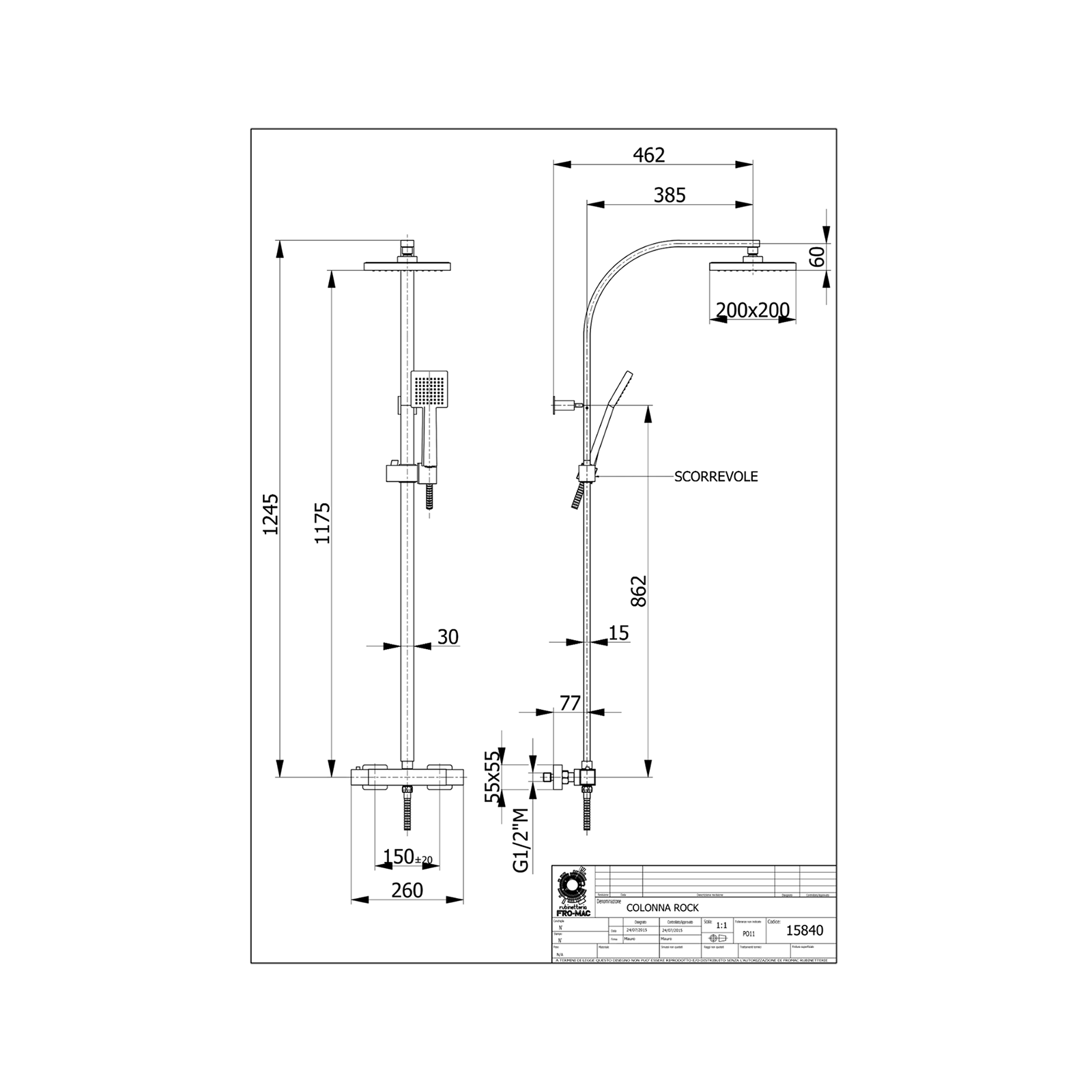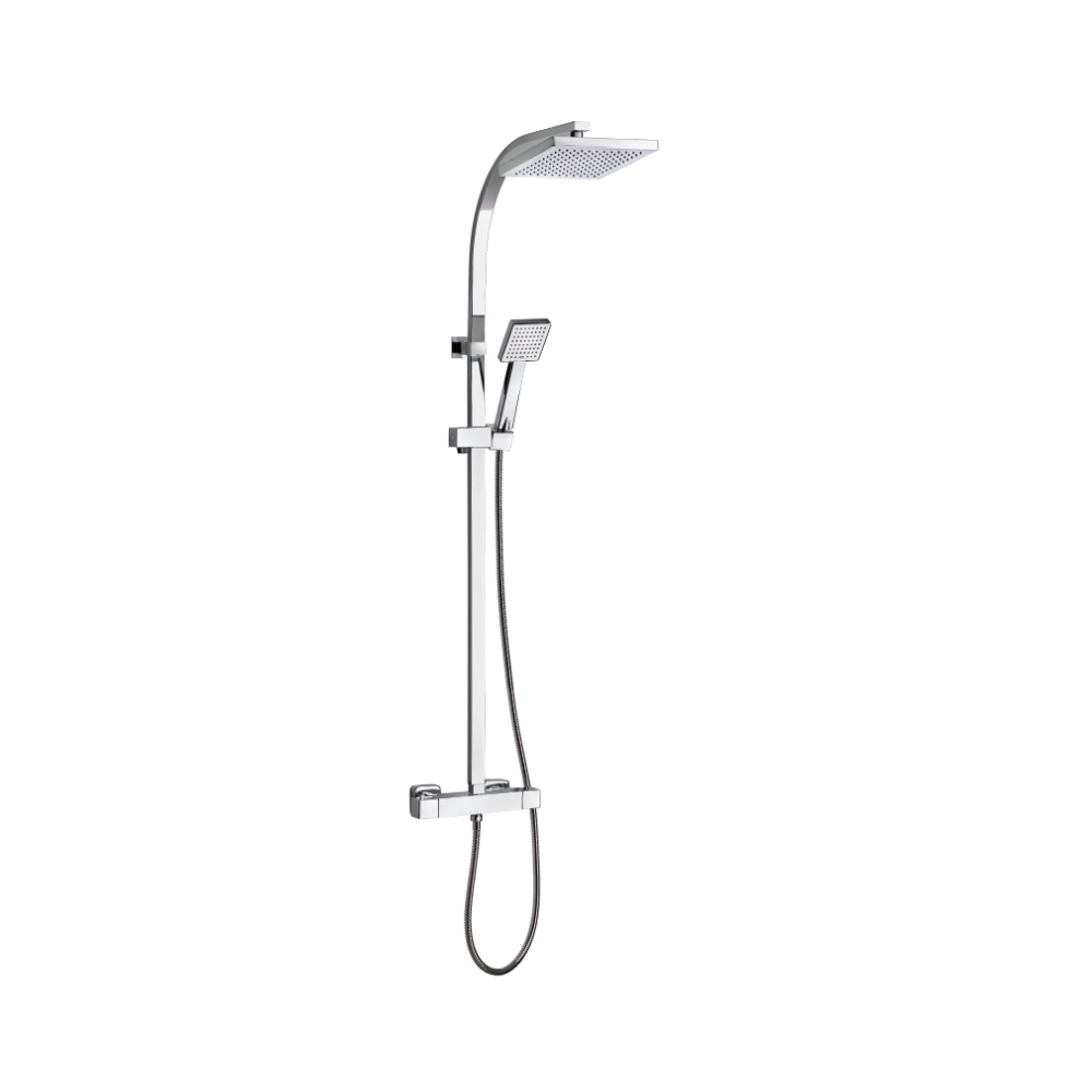 Colonne de douche thermostatique avec inverseur automatique, complet avec rose auto-nettoyante et kit de douche.