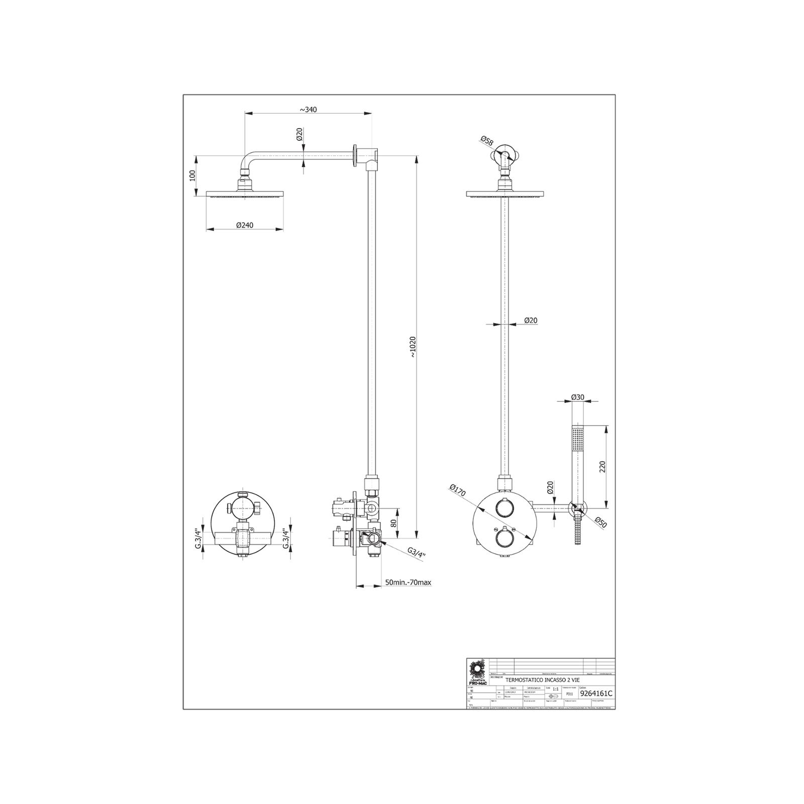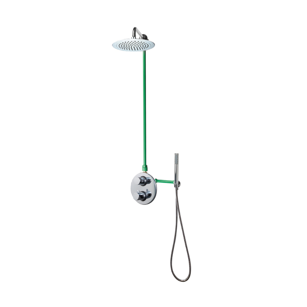 Thermostatic shower column with automatic diverter, complete with ABS shower head Ø30 cm, and hand shower with anti-lime picots.