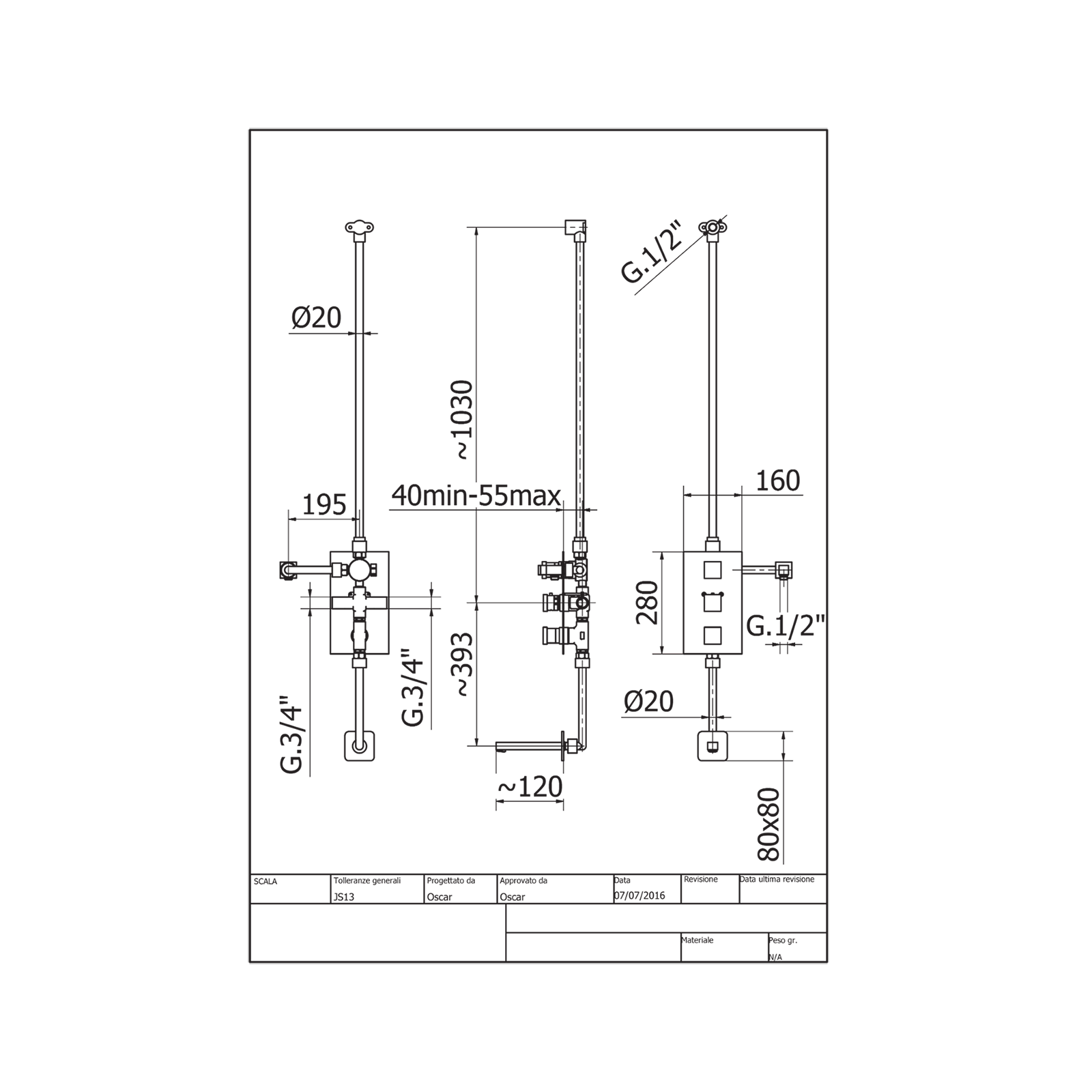 Support de douche externe en laiton avec sortie d'eau 1/2 "- 1/2".