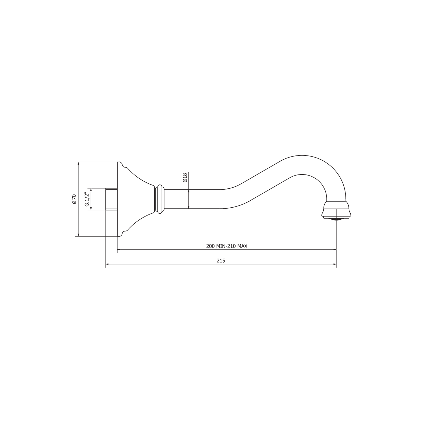 Canna antica 20 cm per lavabo a muro con rosone