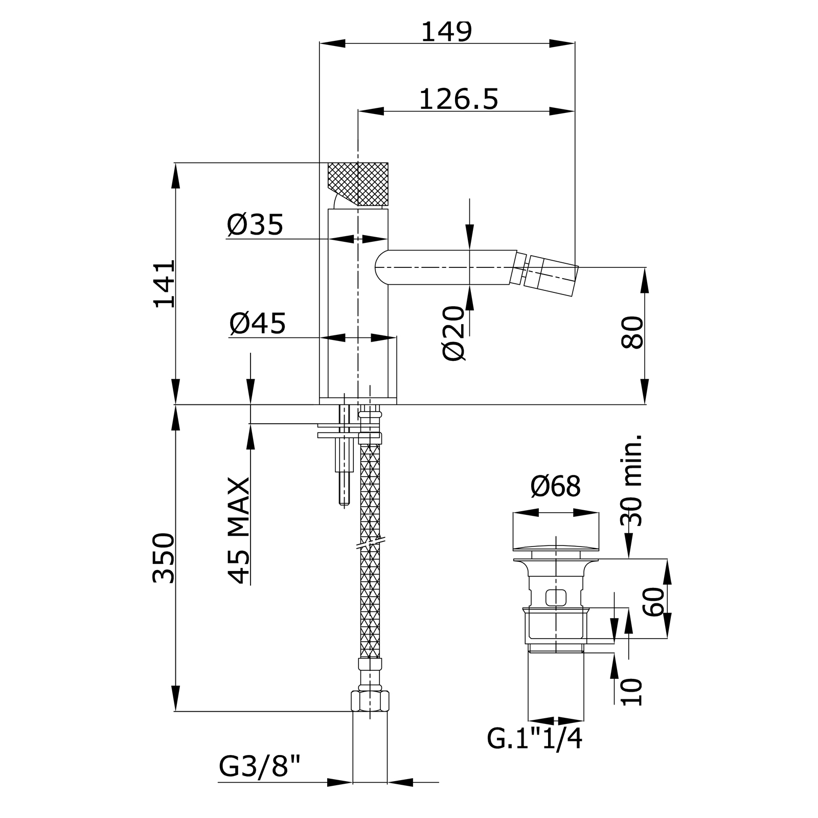 Miscelatore monocomando bidet con scarico CLICK-CLACK