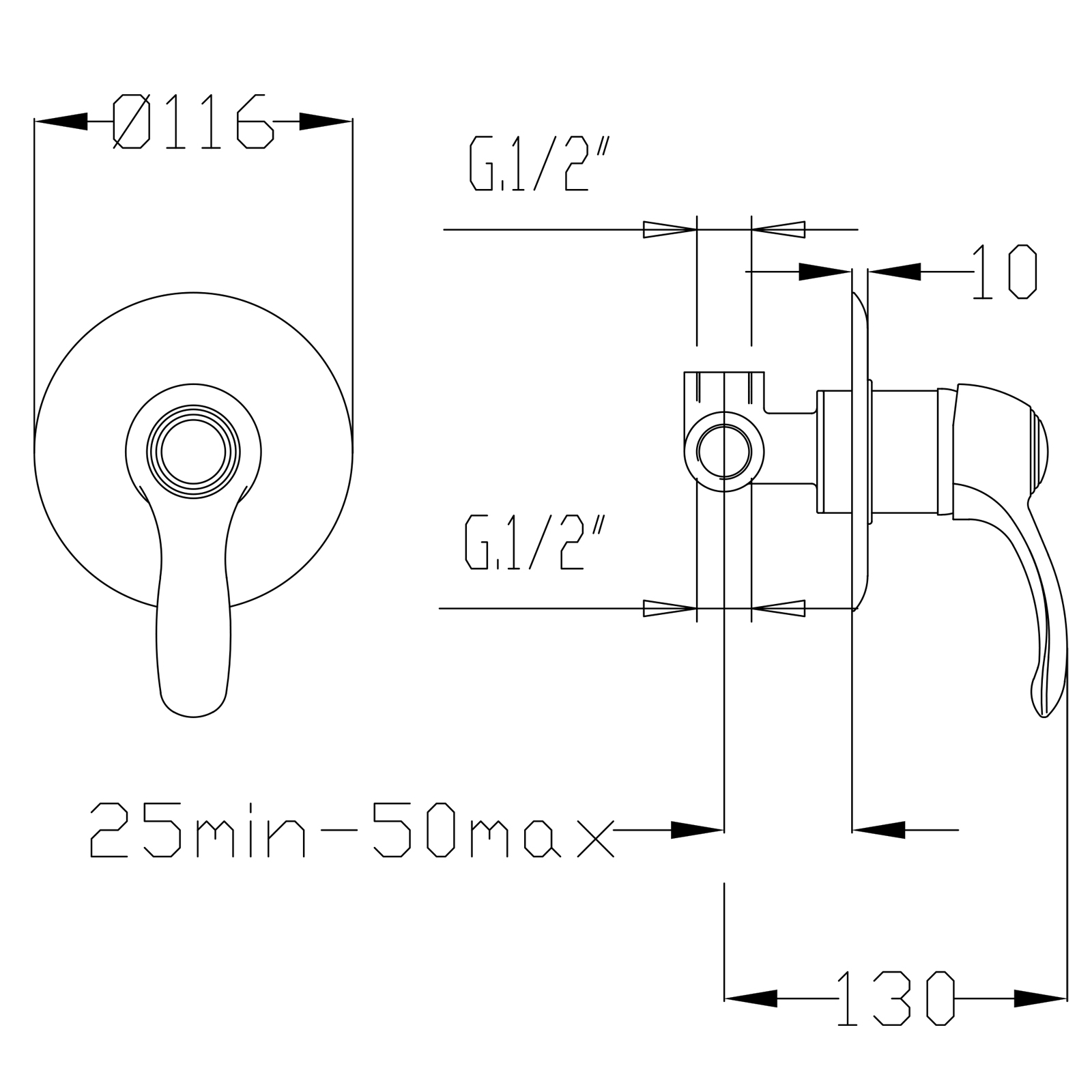 Miscelatore monocomando incasso doccia 1/2"-1/2".