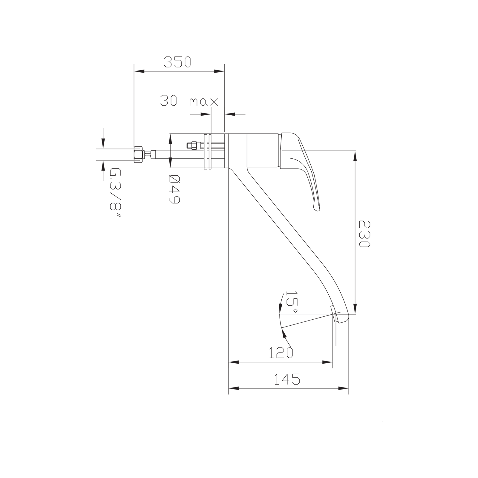 Miscelatore monocomando lavello con bocca tubo girevole.